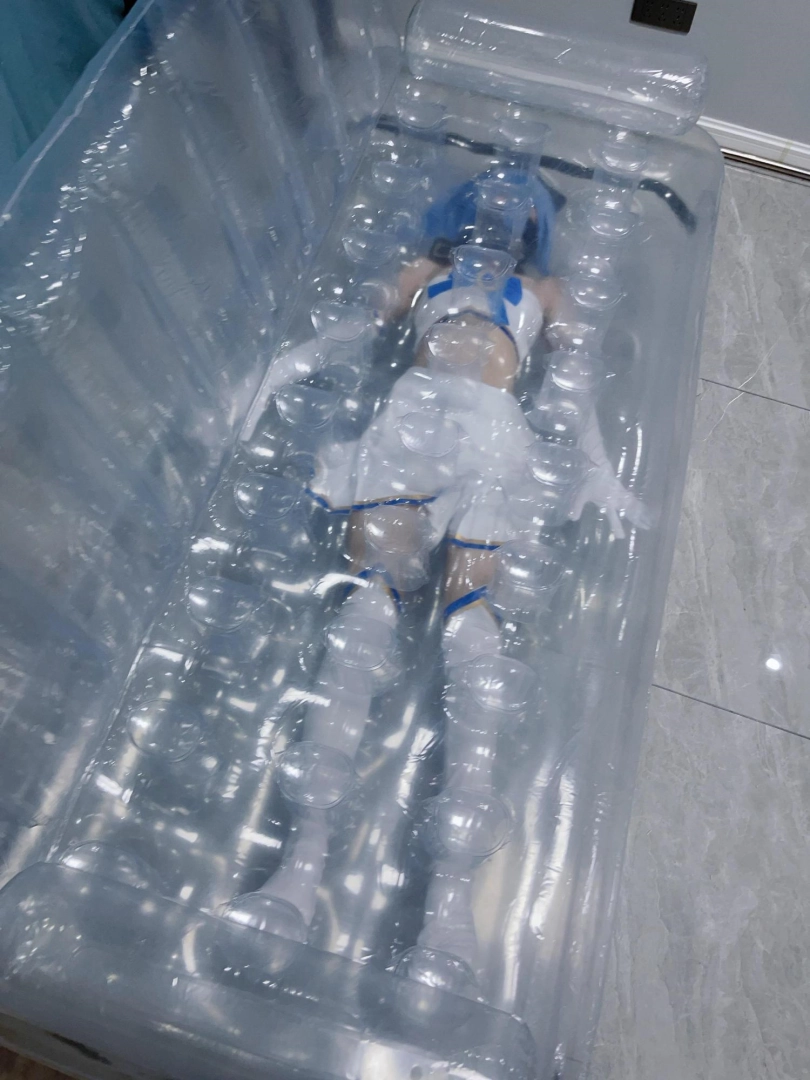 为了增加拘束效果,进去之后还补了气,满满的充气压迫~