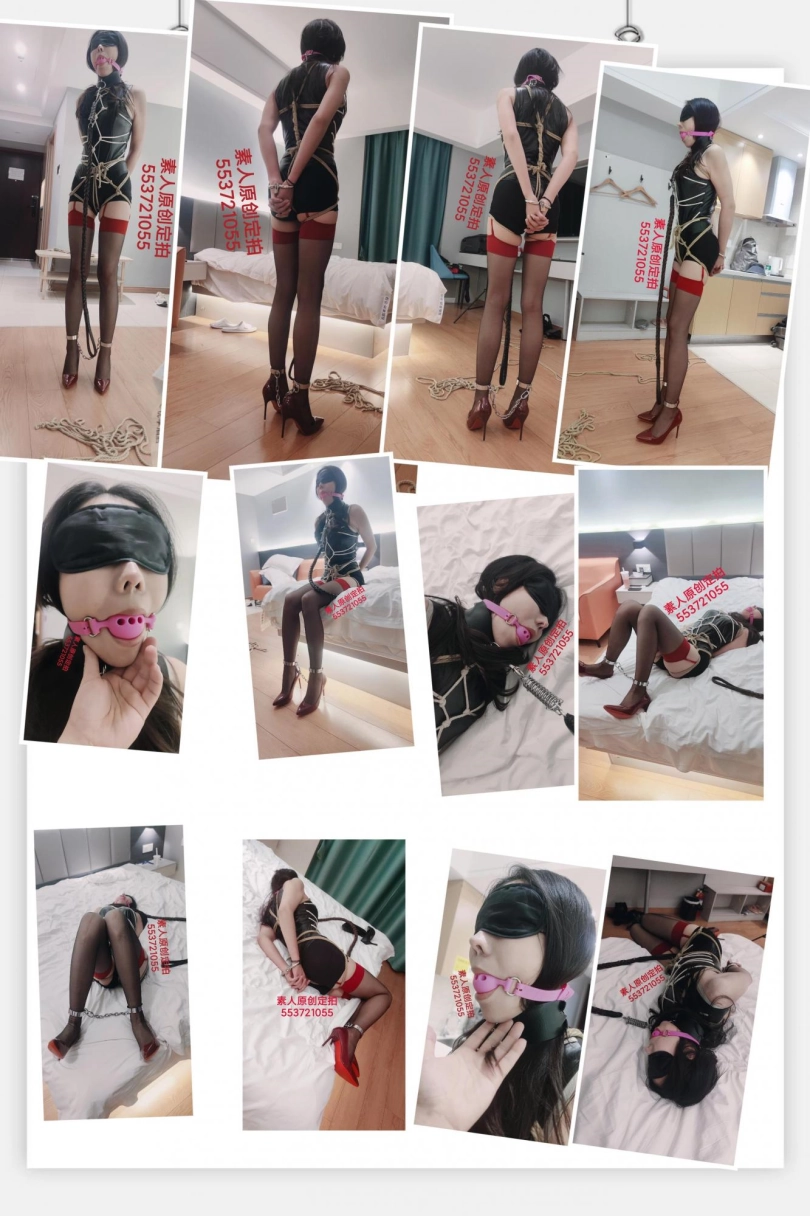 【素人】169身高礼仪模特小玉性感酒红色细跟吊带袜手捆绑铐脚镣第8部