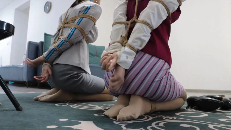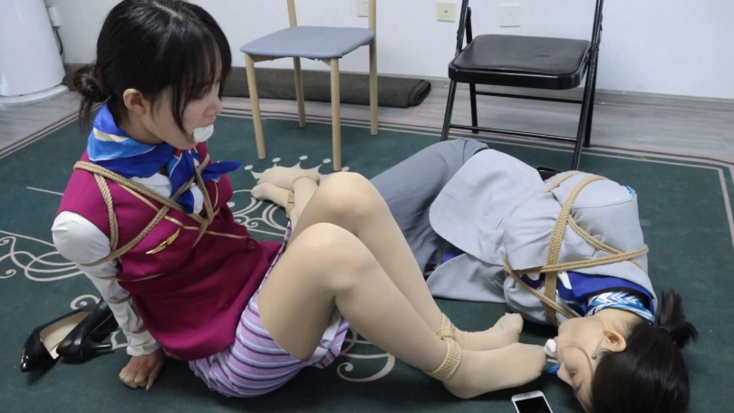 这次没有设计台词,原因大家都懂,纯粹的双人紧缚自救