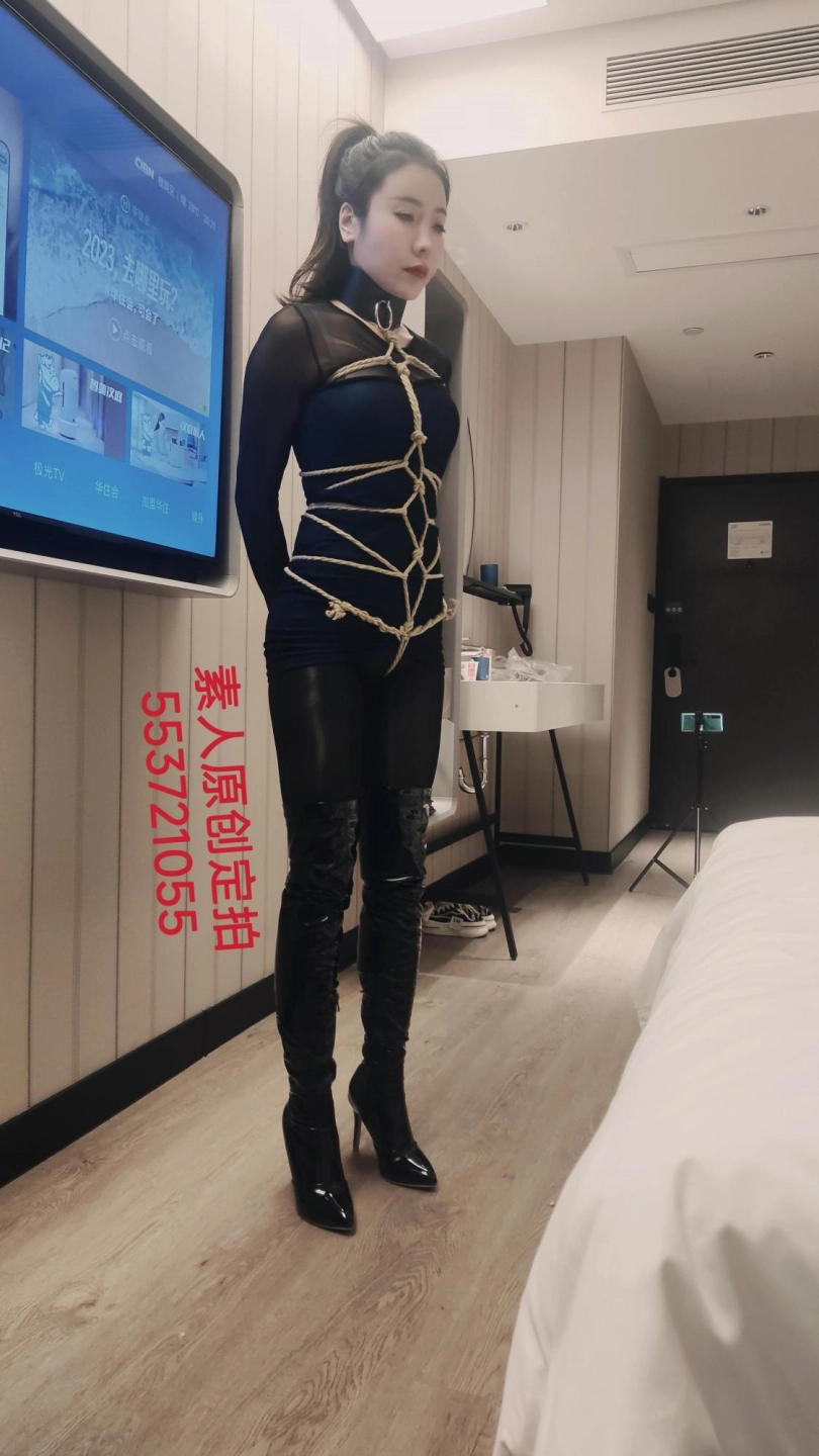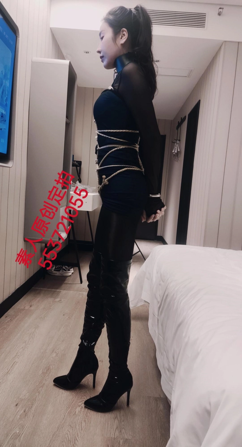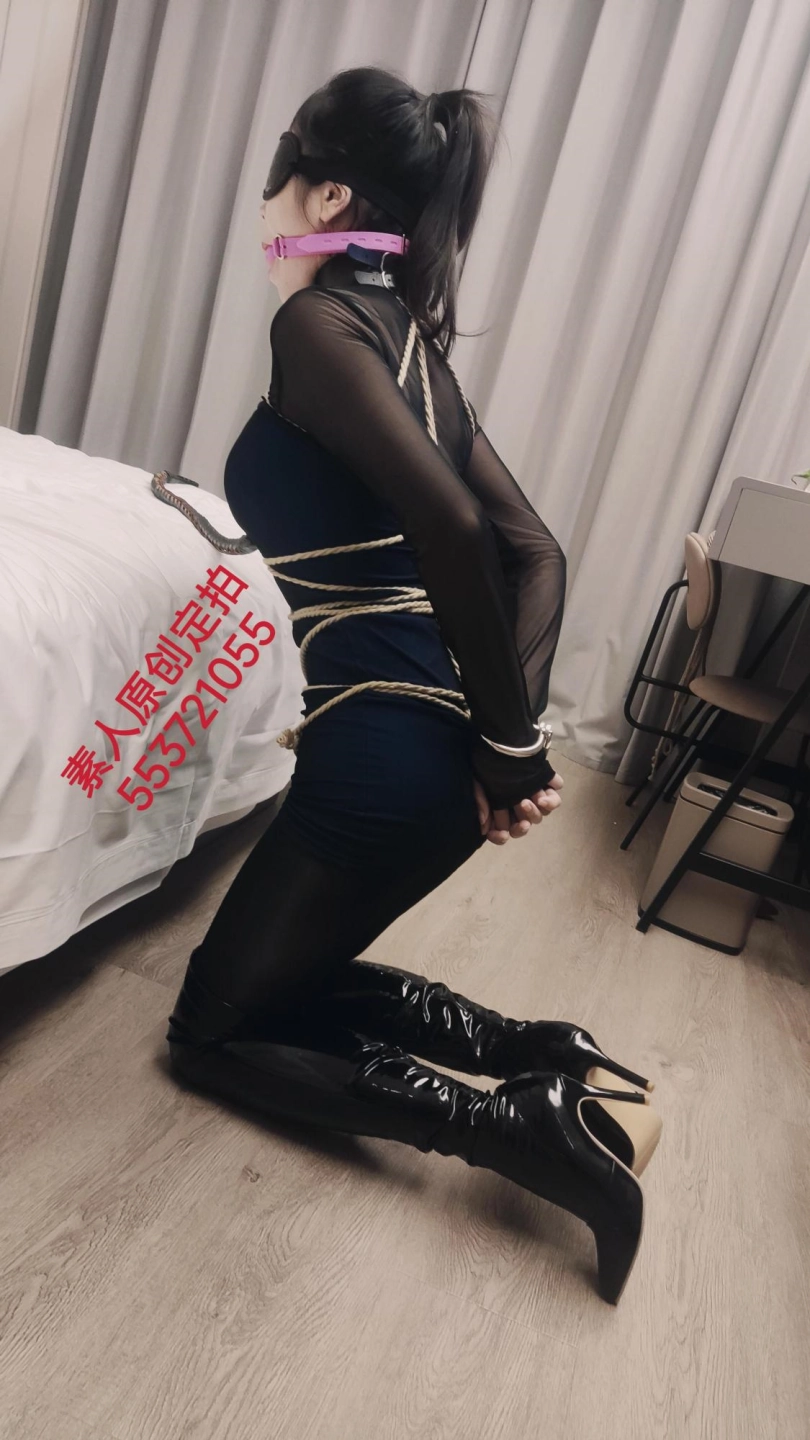 【素人】小玉连衣裙过膝长靴马油黑丝袜捆绑调教