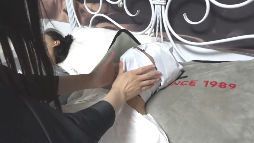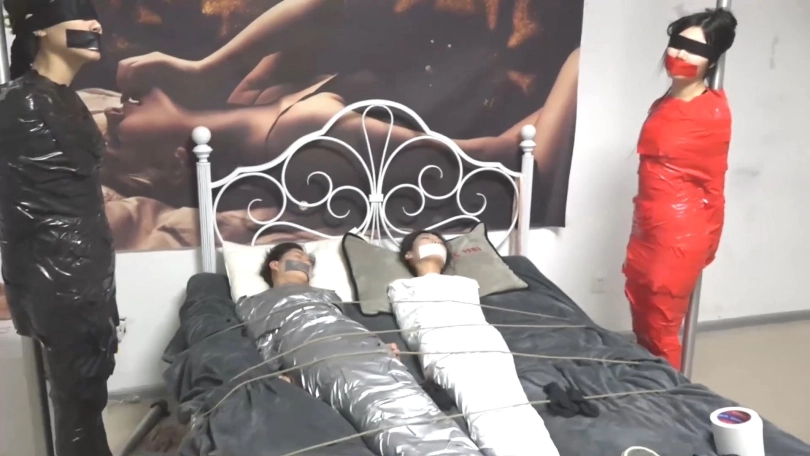 待其中一个女小偷出门取钱之际,女老赖悄悄的解开绳子,并弄晕了其中一个女小偷将她蒙眼堵嘴绑在床上,等她同伙回来也被迷晕,然后和两个倒霉的债主一起被这个凶残的女老赖绑成了四具木乃伊.