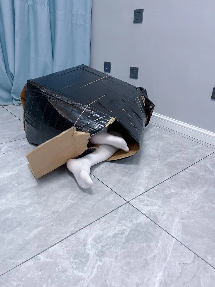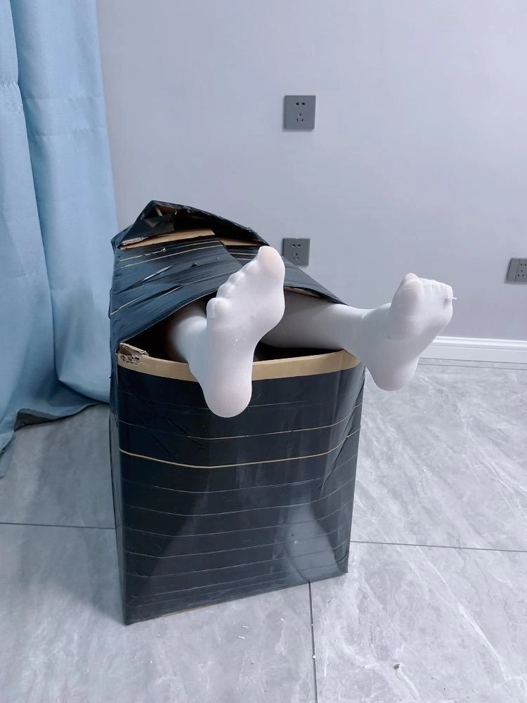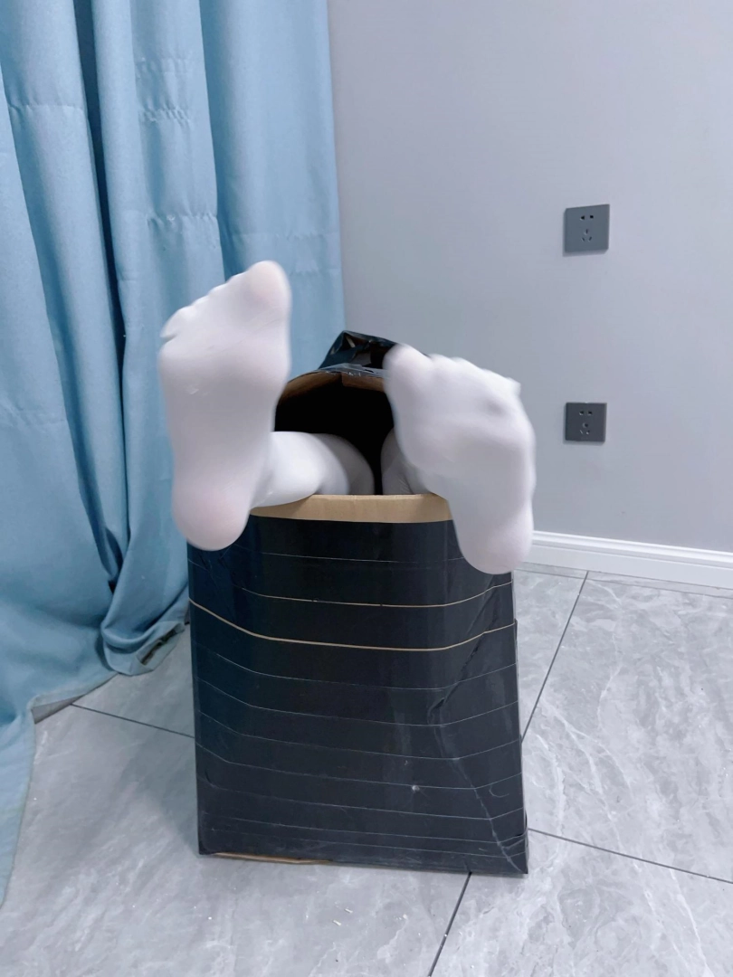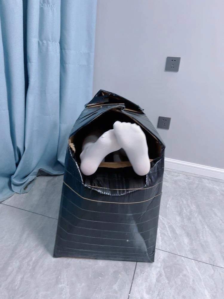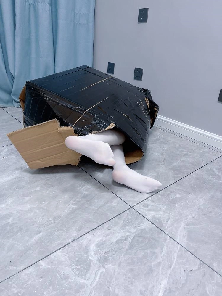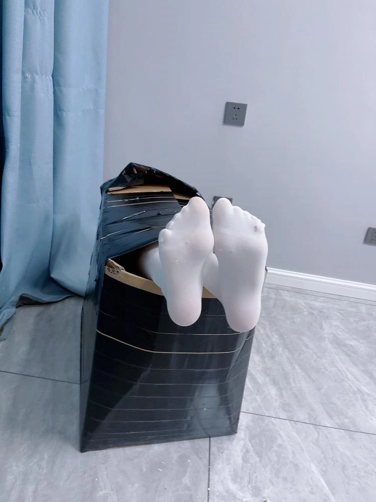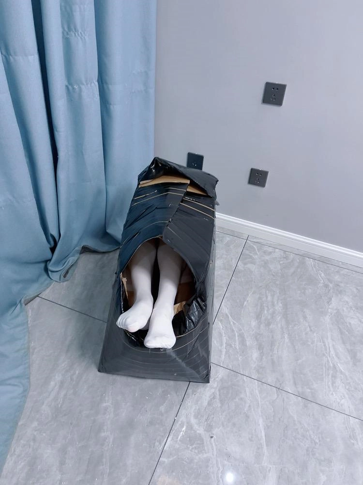 因为茶茶已经有过一次经验了,所以这次不给茶茶任何工具、双手反绑、手指也用胶带缠成拳头,让茶茶只能靠自己的白丝小脚踹破箱子脱出。