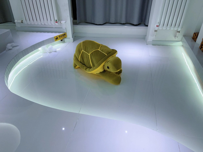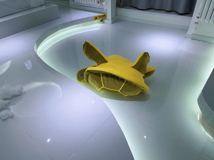 part1:把茶茶四肢折叠放入毛绒玩具乌龟中,填充棉花使毛绒玩具有压迫拘束感,增加爬行难度。(带穿入过程,大概3-5分钟),然后命令茶茶在乌龟中完成爬行上下台阶等动作。同时恶趣味翻面茶茶,让小乌龟自行翻转回来。