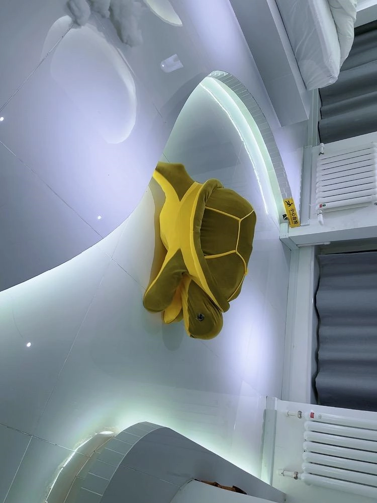 part2:放入跳D,用胶带固定好,打开后静静放置,看填充物在小乌龟内挣扎扭动呻吟~把小乌龟翻面,让茶茶努力翻回。