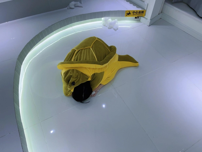毛绒玩具的闷热+爬行的难度对体力是一个非常大的消耗,一小时的长时间折磨也让茶茶体力不支。放出后茶茶浑身都是汗水,体力完全透支。哪怕有棉花垫着膝盖也因为爬行硌的酸痛,几天才好。看着可爱,其实对体力和耐力都是不小的考验。