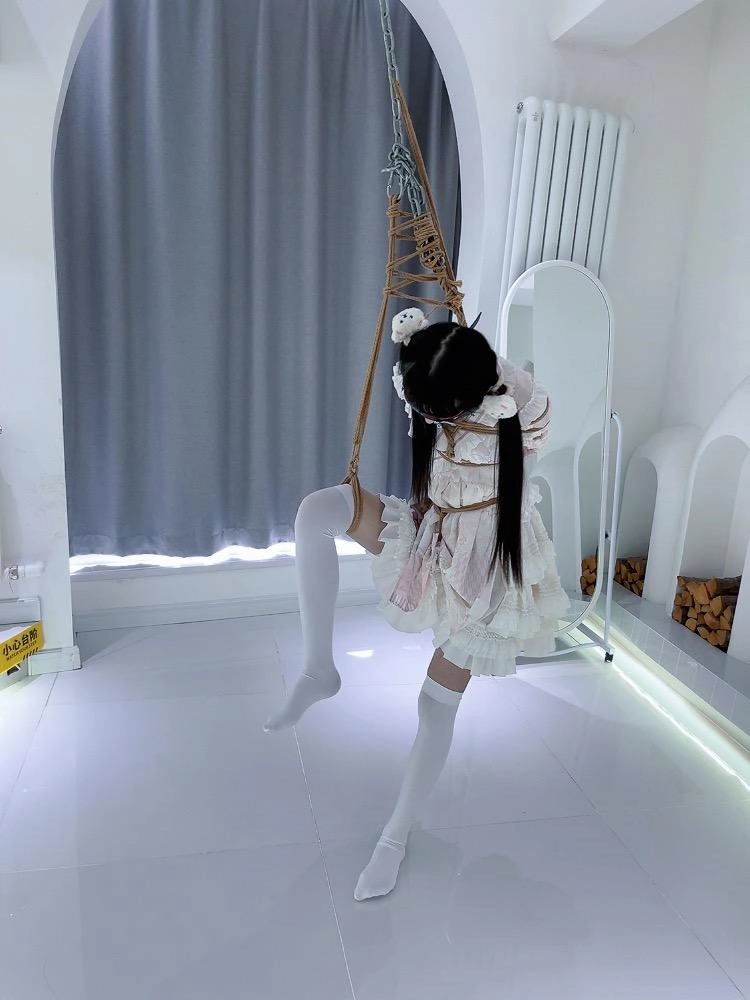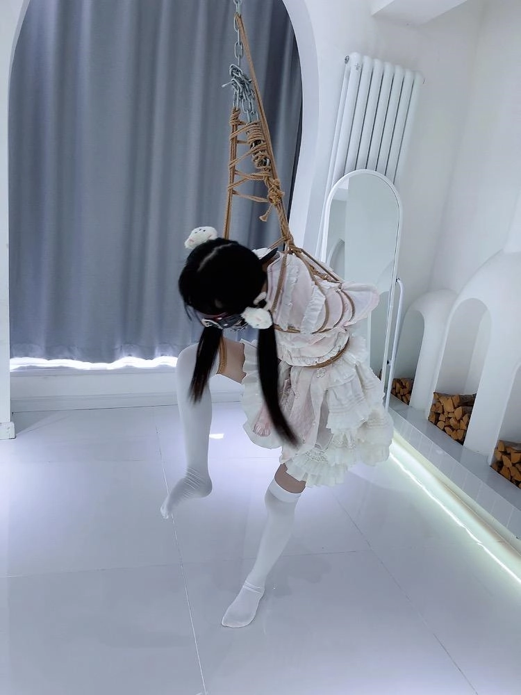 内容:把lo娘茶茶单腿吊缚,只能脚尖着地。这次单腿吊比常规单腿吊严厉一些:上胸绳承重微微左倾,配合单腿前吊很难直起腰来。然后把茶茶吊起到只有一只脚的脚尖能触碰到地面,另一只脚单腿前吊。这种情况下如果想让脚尖压力小的话,左倾承重的上半身就会把大部分体重勒到一侧大臂上,且没有任何其他可分担重量的姿势,看起来平平无奇其实手臂需要承受大量痛苦,超 虐~