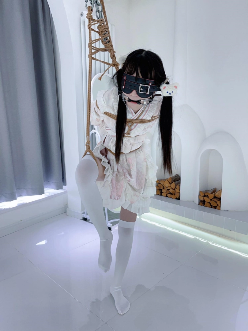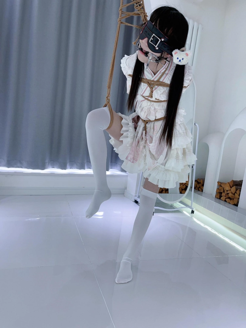 【咕咕精】虐缚1!双马尾白丝lo娘茶茶踮脚单腿吊-痛苦罚站、股绳、摇摇欲坠、医用口枷、口水直流保持平衡