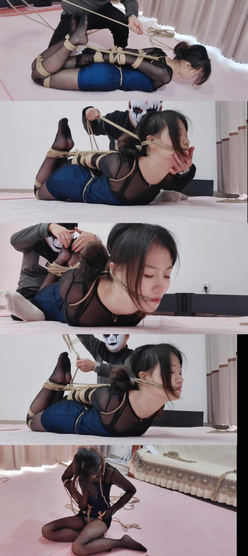 【素人】清纯幼师美女被双腿并缚欧式直臂紧缚强制抬头绳子勒嘴驷马放置难受全过程