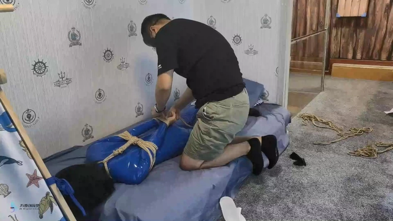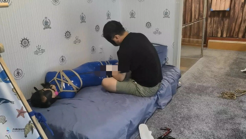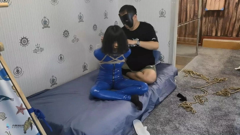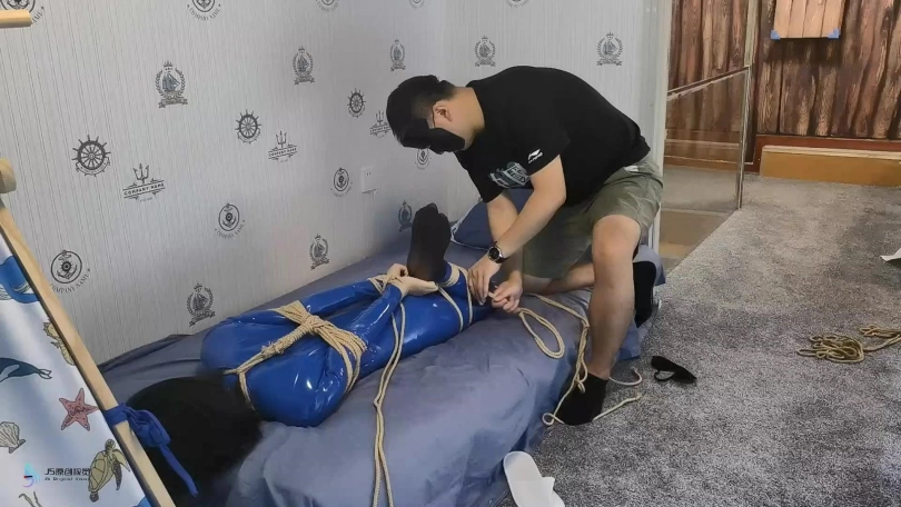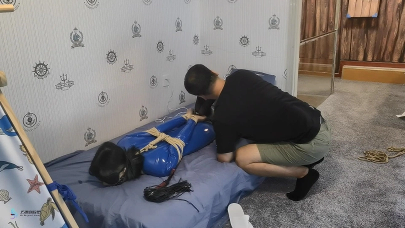 【JS】【激辣】超紧驷马捆绑蓝色胶衣口球堵嘴蒙眼鞭打玩足棒棒刺激