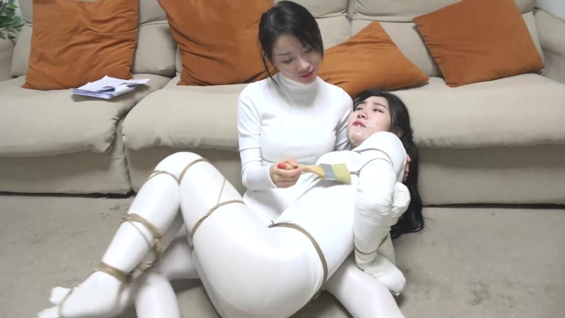 【逍遥】《白丝女奴的贩卖直播01》刘洋 吴晗2位性感的油光白丝体操服美女 主播介绍性感可爱的女奴 结果自己玩丢了 主播也被捆绑顶替女奴