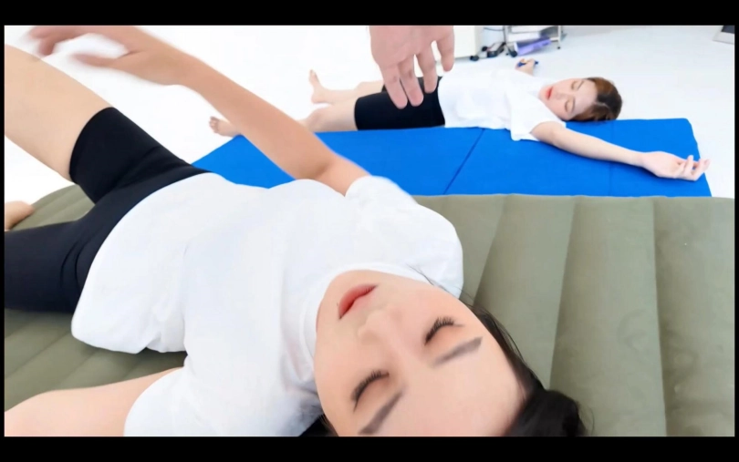 两个女生相继弄晕对方后摆弄,最终双双倒下。涉及元素有昏迷、摆弄、裸足、翻眼皮、足恋等。