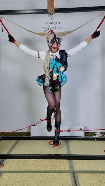 琳妮特小姐的上一场表演似乎没能成功呢,但是没有关系,前一场只是热身表演,接下来的第二场表演才是压轴好戏!接下来请欣赏,琳妮特小姐的完全悬空大字吊缚脱缚表演!我们的工作人员还会在中途随机使用道具进行干扰!至于琳妮特小姐能不能成功脱缚,敬请期待~