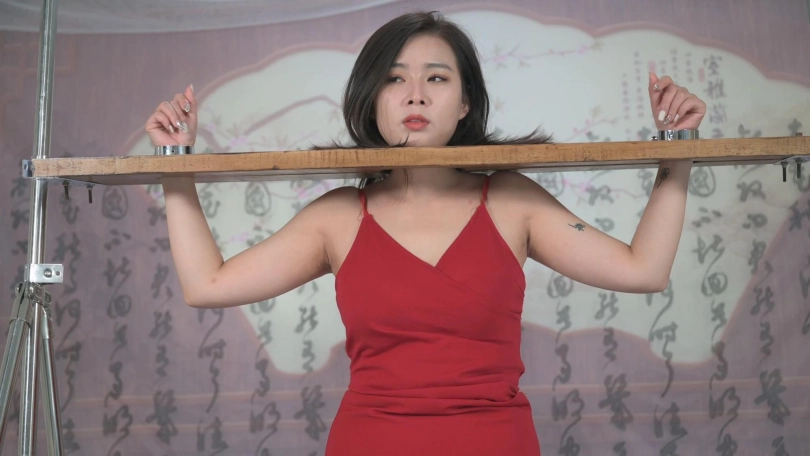 绳模Sprite雪碧初次体验木枷,不由得感叹这是在体验各种酷刑,的确,她的腿部用铁架部件固定,脚上戴镣铐,被这样禁锢的雪碧只能任由宰割了。敏感的雪碧如此状态下面对TK只能无助的呻吟,这撩人的声音此起彼伏。