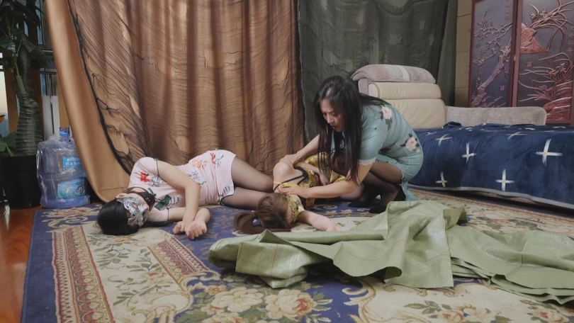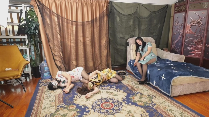 秦可音,吴睿诗,向若楠被换上了紧身旗袍,听话的乖乖坐着