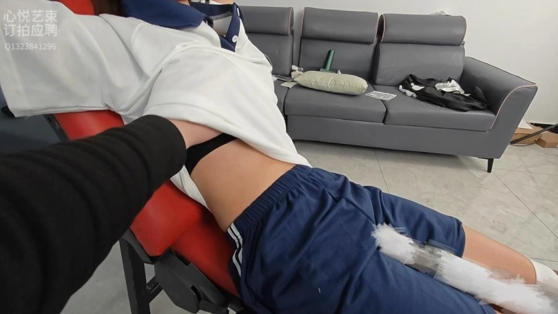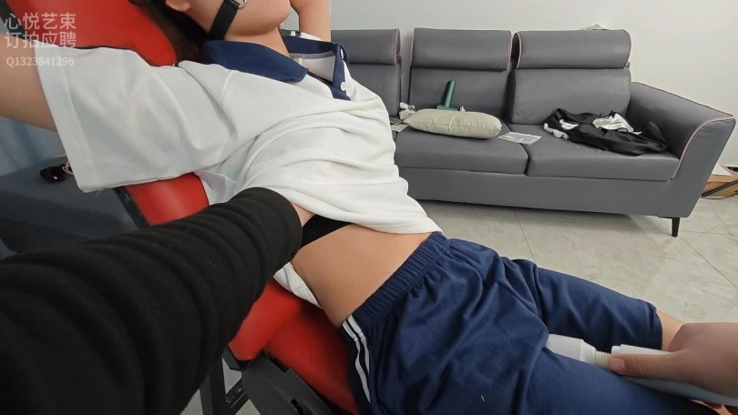 欢欢白丝单马尾老虎凳脚枷TK+强制,口球堵嘴求饶不能。欢欢最怕痒的腋窝被长时间袭击,拼命的在椅子上挣扎,左右摇晃,我都怕给我的椅子弄塌了。可惜手腕的束缚让欢欢只能左右摇晃,始终有一边腋窝是要收到我的袭击的。只能选择是挠左边还是右边。最后挠到连连求饶,震到小裤湿湿。