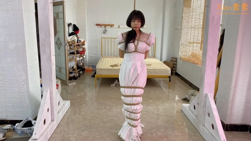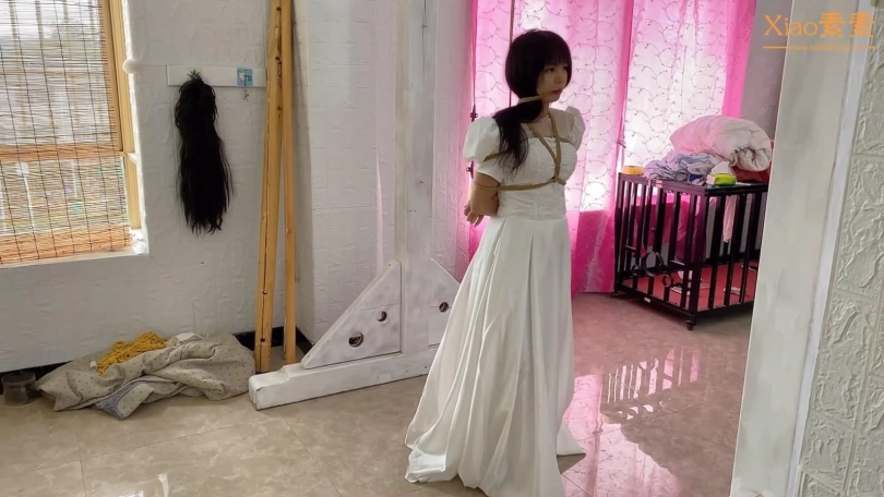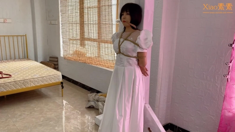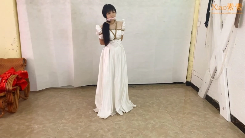 洁白圣洁的婚纱,在绳子的作用下,可以把一个美丽的新娘变成美人鱼一样让人心动的女孩,柱绑,吊绑,驷马。