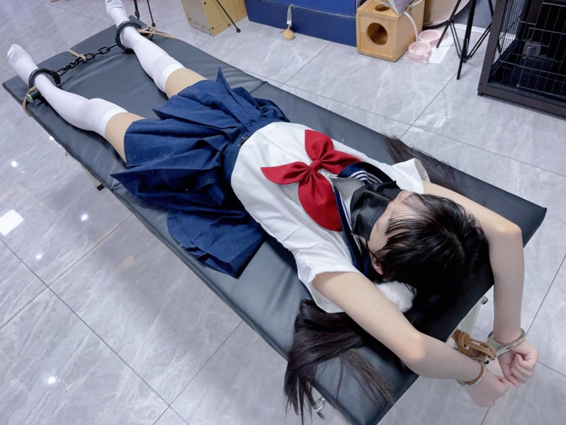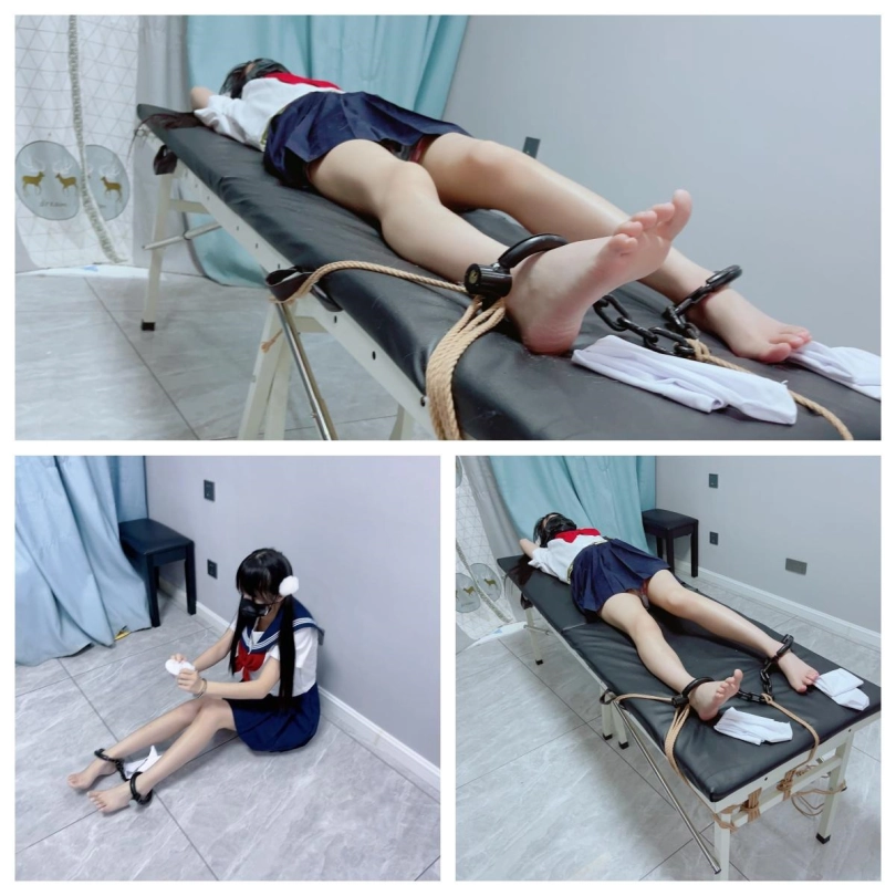 7.挠痒惩罚:押送茶茶躺在刑床上,丝袜+胶带封嘴,手腕戴着手铐举过头顶露出腋下,脚镣固定在刑床底部,对茶茶进行tk惩罚。其中在挠痒的过程中逐渐脱去茶茶的白丝,裸足白丝挠痒都要让大家看到!