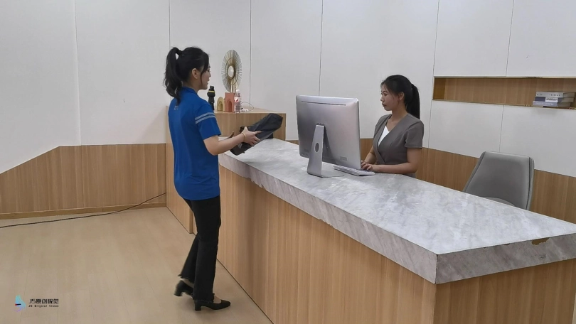 6)下一个场景中,面试者来到公司,强盗假装她是经理,带她进了老板室为面试。在劫匪和面试者坐下之后。桌下的接待员在挣扎、吵闹;强盗试图踢她阻止她,并告诉面试者这声音是从附近正在装修的房屋。面试者感觉不太对劲试着离开,但是劫匪拿出枪来威胁她停下来,让她脱掉衣服。面试者别无选择,只能照做。然后抢劫犯要求她把手放在她背后用拉链绑住她的手腕和脚踝,然后胶带封住她的嘴巴;面试者尖叫着发出“嗯嗯”的声音。