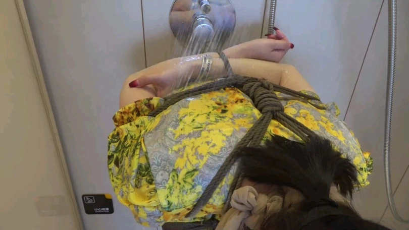 【逍遥】柳洋浴室调教 湿身诱惑,黄色战袍,股绳,肉丝超紧缚