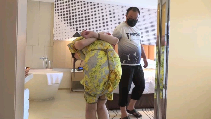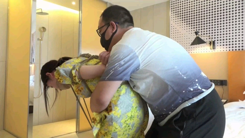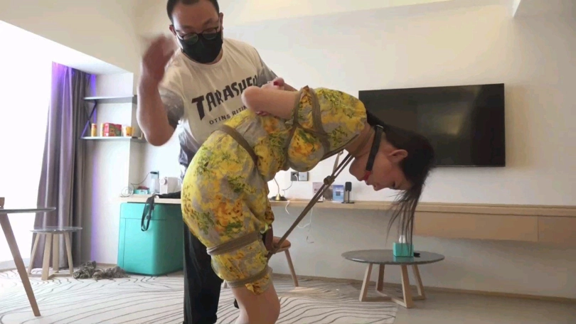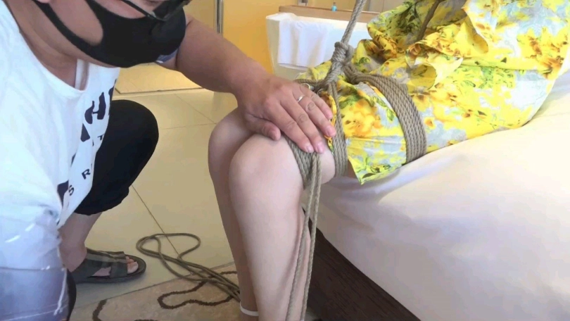 眼镜男觉得只捆绑柳洋还不过瘾,于是将柳洋解开束缚,重新绑好后牵着柳洋来到一家带有浴室的旅馆,一边牵拉着柳洋一边拍着她的屁股向浴室走去。来到浴室后,柳洋已经被加固束缚,并且嘴部的口球换成了丝袜。这可把柳洋难受的不清,被戴上眼罩,外面什么也看不清,只能任眼镜男玩弄。淋浴一番后,眼镜男将柳洋抱进了浴缸,柳洋无处安放的丝袜美腿到处乱蹬,等水没过柳洋后,眼镜男还假惺惺的使劲拉柳洋的股绳,说是把她提起来,避免被水淹过,而这一举动带给柳洋的只有无尽的快-感。