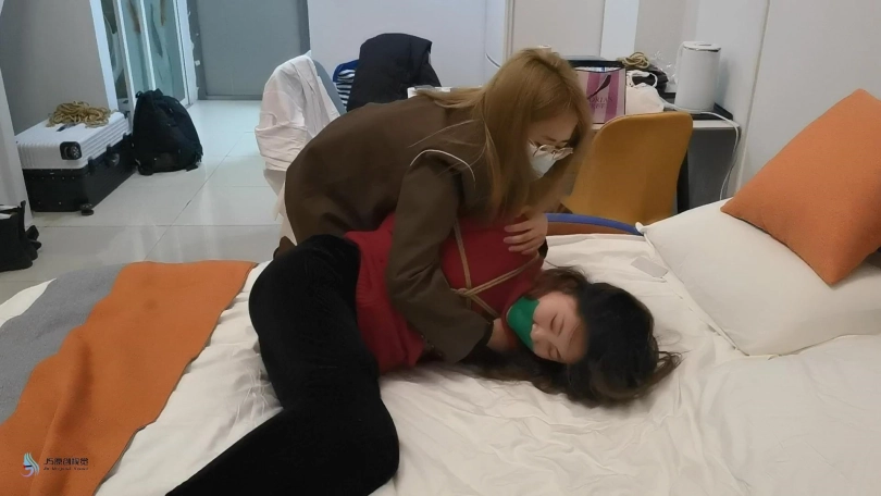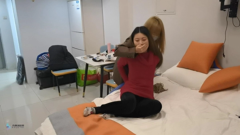 女人回到家中,但她不知道家里已经潜入一名女匪徒,趁着女房主休息时候,女匪从后面袭击将女房主捆绑起来,并塞住她的嘴巴。逼问女房主银行卡密码。走之前将女房主驷马加固捆绑。再劫匪离开后,女房主挣脱束缚并报警。