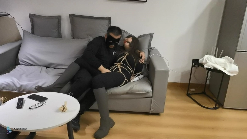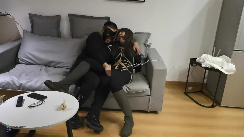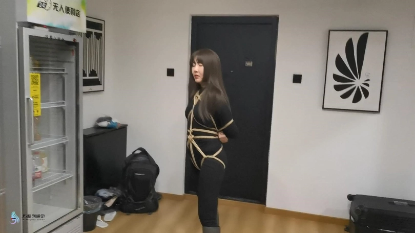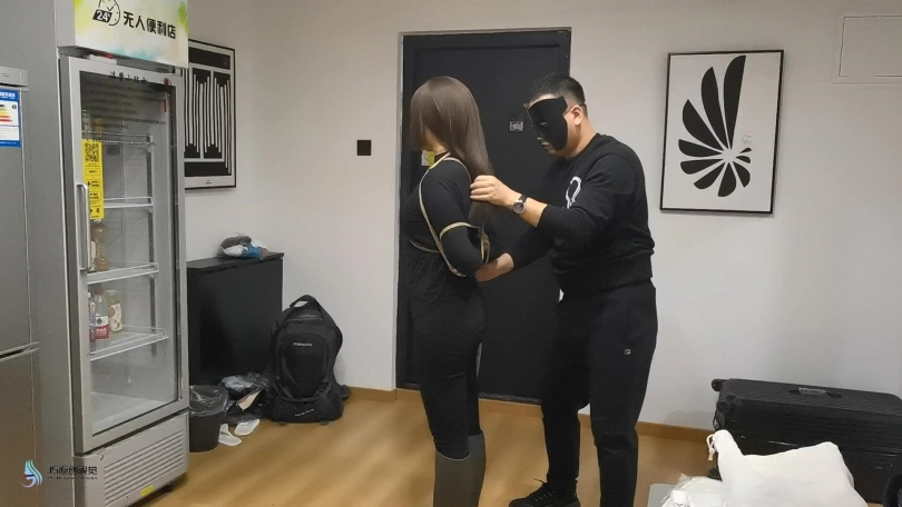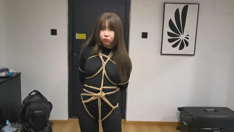 【JS】【艾菲】女努训练游戏黑衣长靴紧缚口球堵嘴墙纸高超