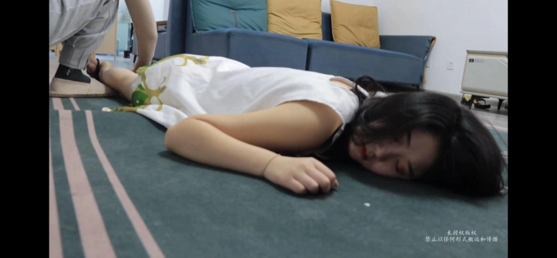 美女cosplay原神角色,被男人弄晕后玩脚摆弄身体。