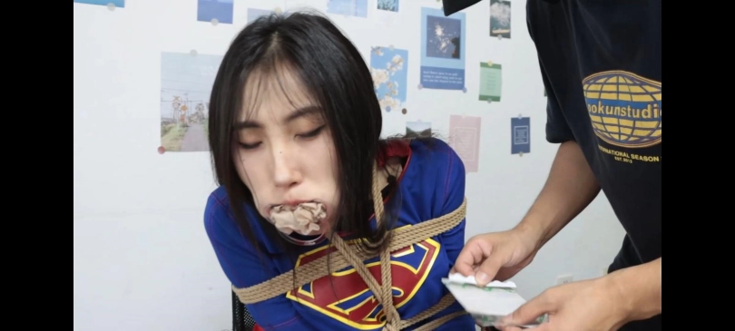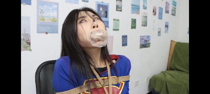 女超人一路跟踪罪犯来到他的实验室,女超人被罪犯发现。女超人:束手就擒吧你已经无路可逃了,然后把坏蛋打倒擒拿住。罪犯笑着说:我在这个城市放了炸弹,如果你不乖乖听话我同伙就会引爆炸弹。我听话,不要伤害无辜的人,女超人放开了他,坏蛋:你的超能力太厉害,然后拿出定身器将她定住。女超人没有防备被定住(女超人只有眼睛能动)女超人恶狠狠的看着他。罪犯给她摆成以下姿势挠他的腋下,女超人无法动便一直笑。拿起她的脚脱下靴子,便开始挠脚心。先挠左脚再挠右脚。女超人痒的不行哈哈大笑但是坚持没让丝袜掉下来。丝袜没掉可以解开我了吧,罪犯哈哈你已经是我的玩物了有资格和我谈条件吗,女超人生气大喊:你个死变态王八蛋,臭混蛋快放了,用这种卑鄙手段不要脸的东西。还不服是吧,罪犯拿出了奴隶水,喝完就会丧失自我意识,成为他的奴隶。女超人不喝定住她的嘴掰开给她喝,喝完女超人便乖乖听话,叫我什么啊,主人,你是谁啊我是女奴隶,请主人随意处置我随便玩弄我。罪犯拿出绳子把她绑起来,大拇指也可以与腿部连接起来,上半身多捆几道勾勒出胸部。拿来扩口器戴上将原味臭丝袜)塞进她嘴里,熏的女超人差点把袜子吐出来,罪犯赶紧拿透明贴粘住防止她吐出来,女超人呕吐的表情。又戴上鼻钩,下半身如下图腿部捆个七八道捆紧一点脚腕的绳子绑在凳子上,大拇脚趾绑起来吊起来。罪犯开始拿各种道具折磨她的脚心(拿牙刷,小齿轮),女超人便很爽的叫着,原来女超人还是个抖m啊,长时间挠脚女超人忍不住便闪躲几下,躲是吧罪犯马上定住她的腿脚便伸直无法动弹,受着吧,女超人哈哈大笑,还挠她腋下,无法动弹只能受着。又拿出鞭子抽她,拿电击棒(找个东西代替),电击女超人的身体,一会解开电,一会定住电随着电流增加,女超人也是被电的抽搐幅度越来越大,坏蛋对着她的身体一直不撒手,女超人被电的翻白眼了,昏死过去。罪犯捏着她的脸:女超人忍耐力也不行啊。