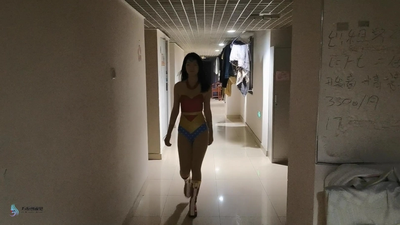 一条绳子缠绕住神奇女侠靴子的拉链,女侠惊呼“不要,不要脱我的靴子”,但这并没用,很快女下的靴子