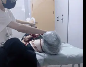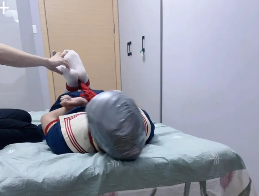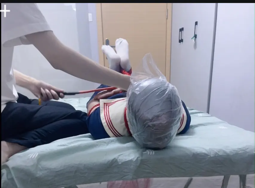用热缩膜、塑料袋套住脑袋、用胶带封好,同时对脚底进行挠痒,并且用小红SP,鞭打屁股和脚心(下手超级重),注意这一切都是同时进行的!!!还会用手拿着塑料膜捂住妹子的口鼻,TK妹子的白丝脚底、鞭打妹子!