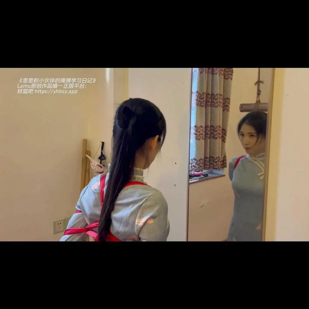 麻绳可能令思思太痛了,所以我们也加入了丝绸吊缚环节。