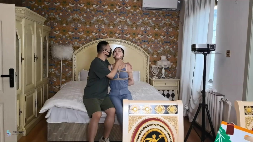 下一个镜头,这时的空姐已被绳子紧紧绑起胸部手腕及足踝亦被绳子绑着。贼人捆绑哈妮后,便叫她跳到睡房内,并安排她坐在床上跟着便再对空姐说「我现在在你的房子里搜索陳老闆需要的東西,你最好乖乖配合,要不然便把你弄死」哈妮惊慌地望着贼人,从嘴里发出呜呜声并点头示意会配合。哈妮在贼人离开睡房后,便尝试挣扎,不停扭动身躯,并不停发出呜呜声,希望外边房子的其他人能听到自己的呼救。