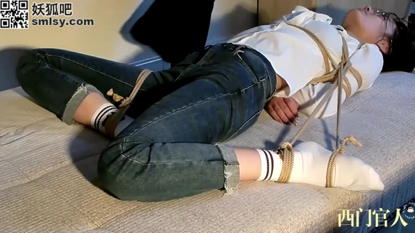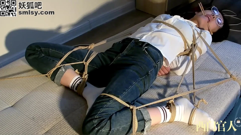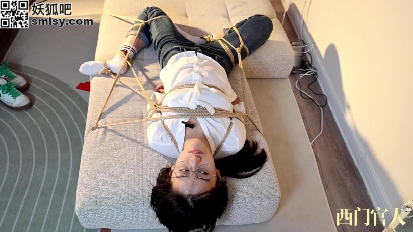 清纯美丽的小姐姐体验绳艺紧缚,简单的胸缚放置再将脚连接到身上,然后全身固定在垫子上。[戴眼镜是真有感觉]夹住舌头挑逗她