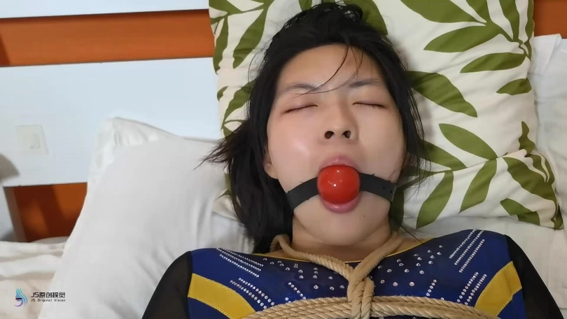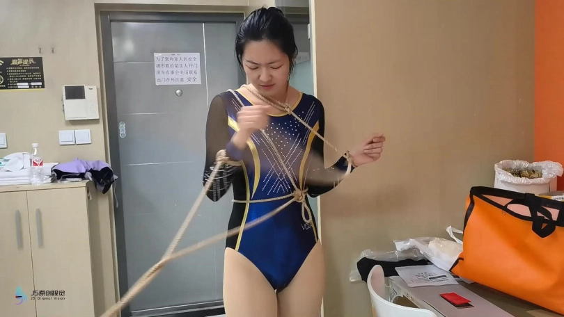 这时,模特发现了纸箱中的礼物盒,以为是卖家送的赠品,打开后绳索从盒中涌出,以后手缚姿势捆住了模特的上身,模特想用手机求助,却又被盒中飞出的口球封住了嘴,模特以站立、跪地等姿势挣扎。发现无法挣脱绳索,模特向门边走去想出门求助,盒中又涌出更多的绳索捆住了模特的脚踝和腿,模特彻底失去了行动能力,只能躺倒在地挣扎。挣扎一段时间后,盒中又涌出绳索,捆绑从蛇缚变成了驷马。房门打开,进屋的正是假扮成快递员的男子。男子走向惊恐的模特,从怀中掏出绳子。黑屏过后,模特以折腿开脚的姿势放置。