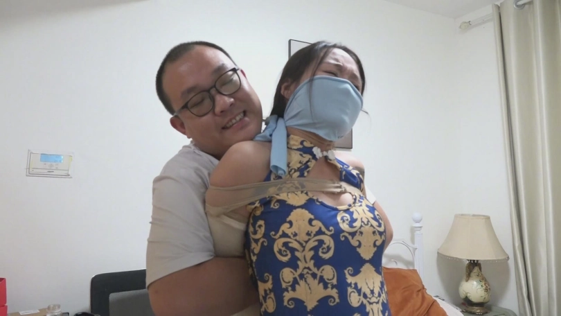 现在出现在监控中的是身着蓝色包臀短旗袍,