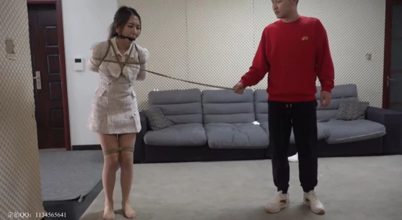 陌生男楼道相遇劫持欣欣,捆绑欣欣各种SM,精彩对话,白袜塞嘴,牵引,挠脚,丝袜绑