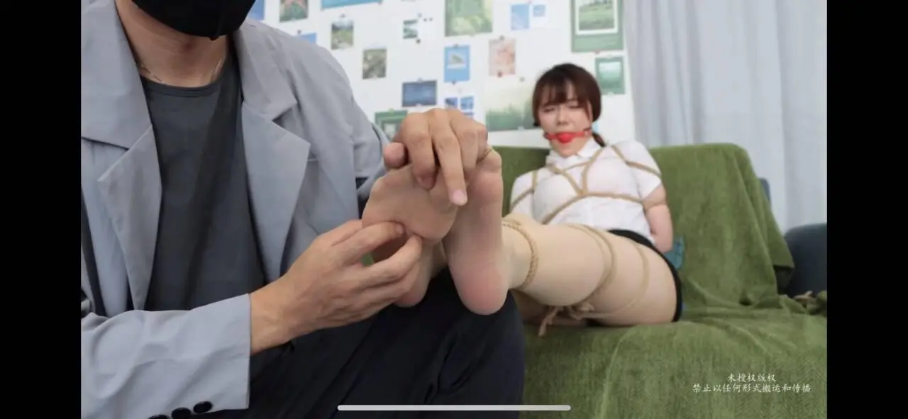 老板因为秘书在财务问题上犯下了错误,准备惩罚一下秘书小董,把小董捆绑起来调教。面对老板,小董也只能乖乖服从。元素第一段,丝袜 ,蛇缚+挠脚心,第二段 裸足,驷马挣扎,第三段;海老缚+口球挣扎。