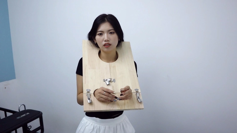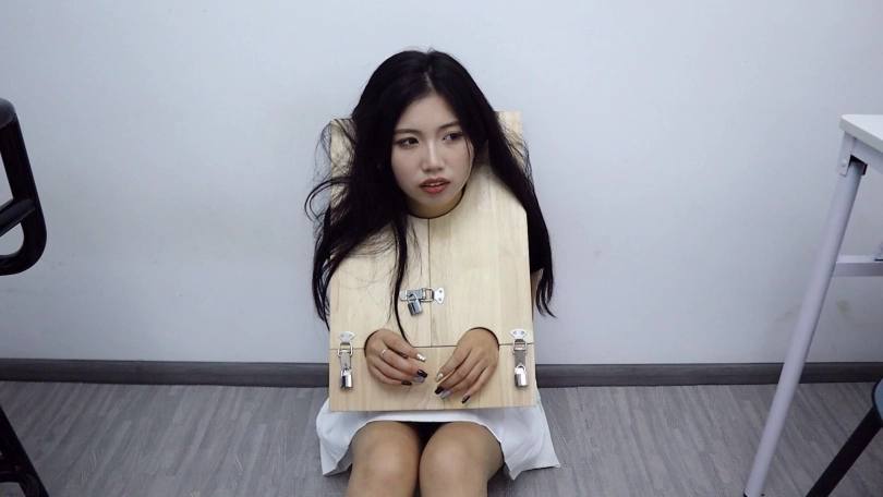 小欣绝对是今年的妹子里颜值佼佼者,上了审讯椅和颈手枷,更加逼真的监狱审讯感!
