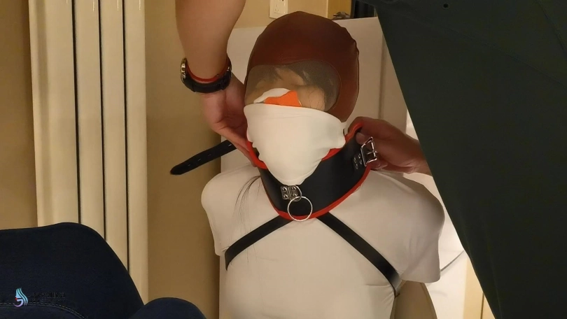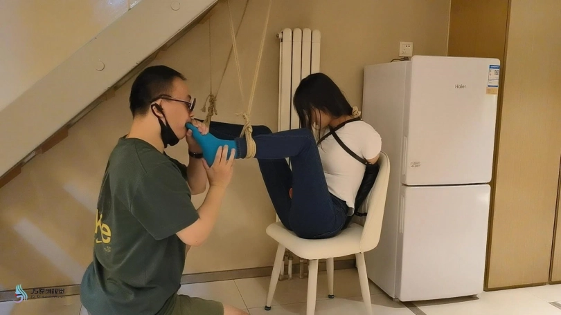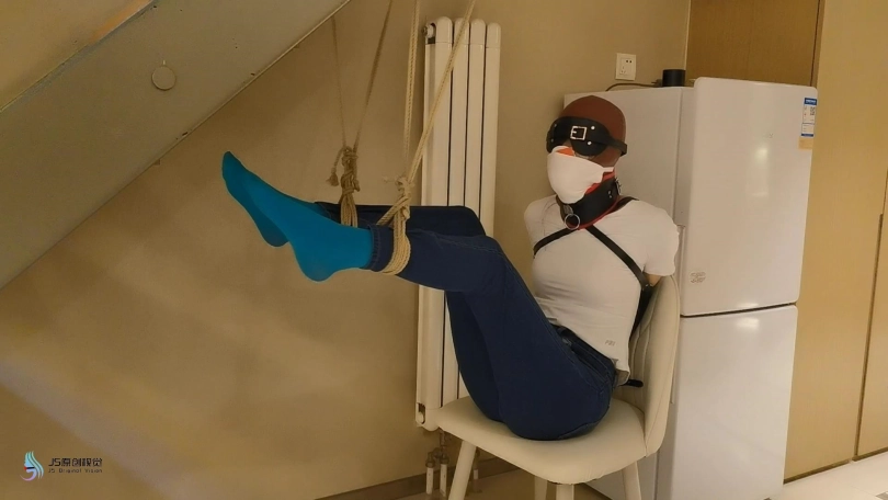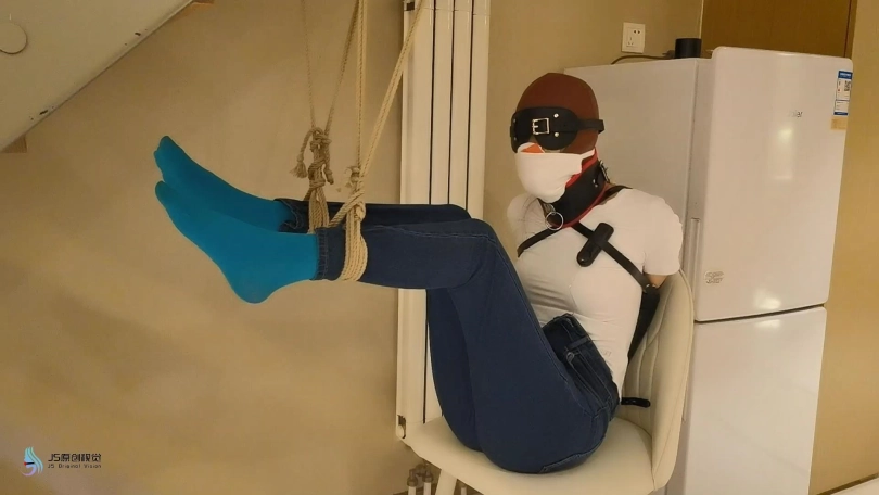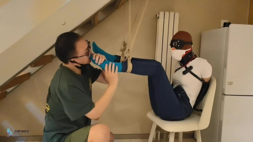 女医生坐在椅子上,她的手被单手套束缚着,她的双脚被吊着绑着。患者亲吻着医生的棉袜脚,脱下她的棉袜发现里面居然还穿着一双彩色连裤袜。刚脱下来的棉袜塞进医生的嘴里,头上套上丝袜头套,胶带缠绕嘴部,防止医生吐出嘴里的原味棉袜。再给她戴上一个皮质头套,只露出眼睛和鼻子部分。拿起女医生的另外一只棉袜放在她的鼻子初,外面用口罩蒙上固定住袜子,这样每次呼吸,女医生都能闻到自己穿过的棉袜味道。脖子上戴上脖套,这让她无法低头。她的眼睛也被蒙上。患者拿出一个电动TD放进医生的裆部刺激着。然后贪婪的亲吻着女医生的彩色丝袜脚。又用棒棒刺激着女医生的裆部。无法动弹的医生开始抽搐呻吟。最后玩够的患者将女医生扛起离开。。。