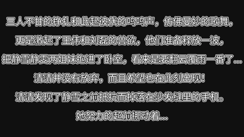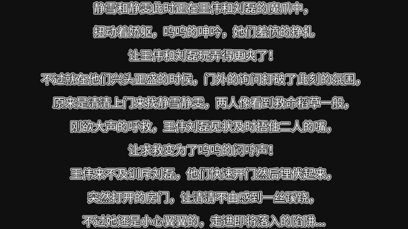 静雪和静雯此时正在王伟和刘磊的魔爪中,
