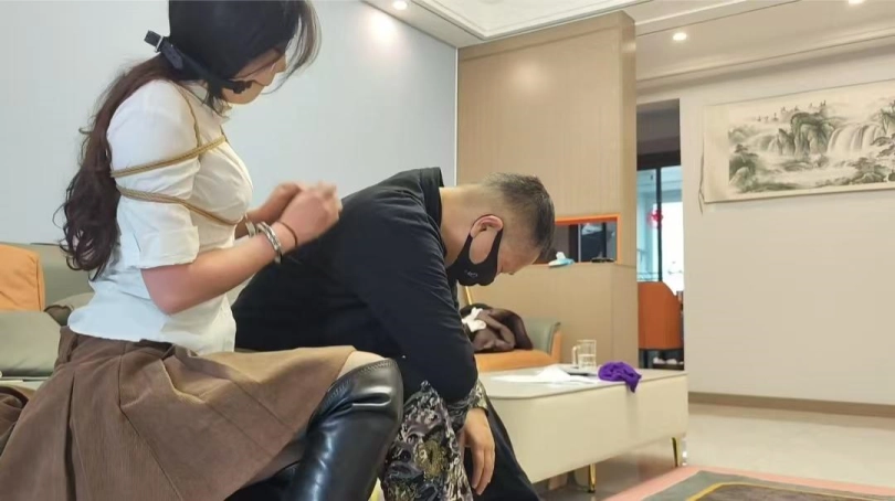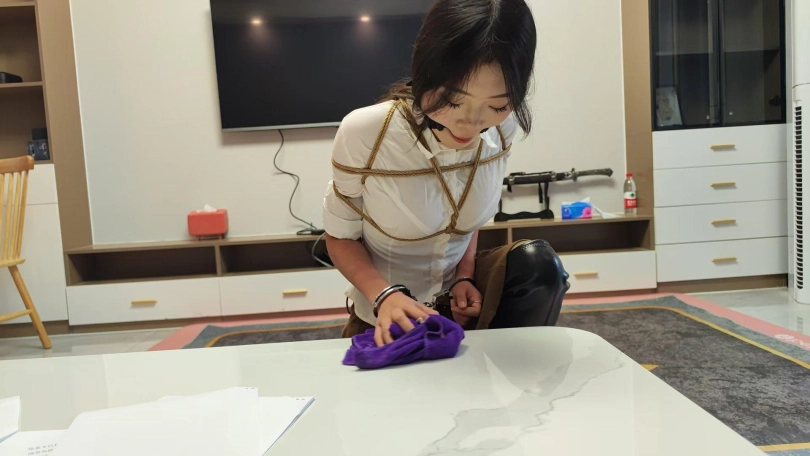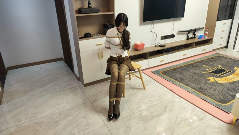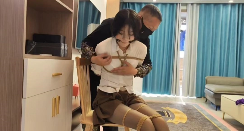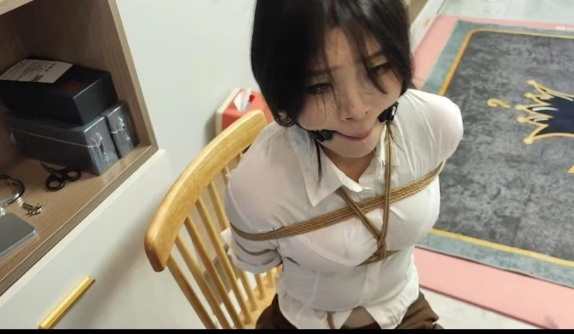 新模小夏,大三学生,身材高挑,性格活泼。被歹徒囚禁在家捆绑做家务,抚摸全身,最后海老缚口水惩罚