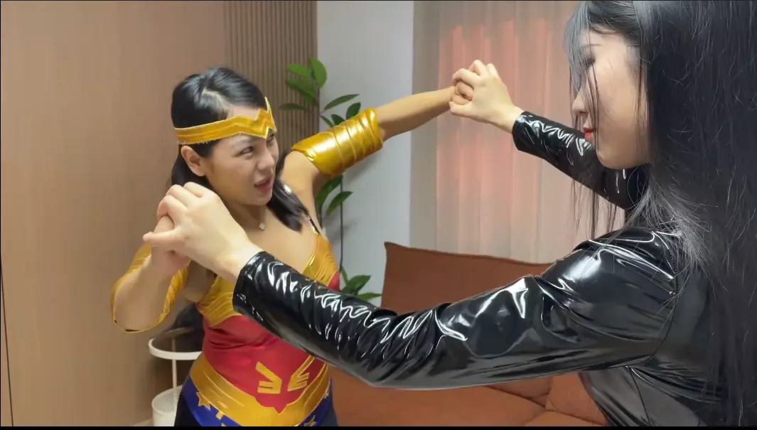 女反:真是废物,一点力气都没有,这次看我怎么蹂躏你。女反松开神奇女侠,神奇女侠瘫软在地上。