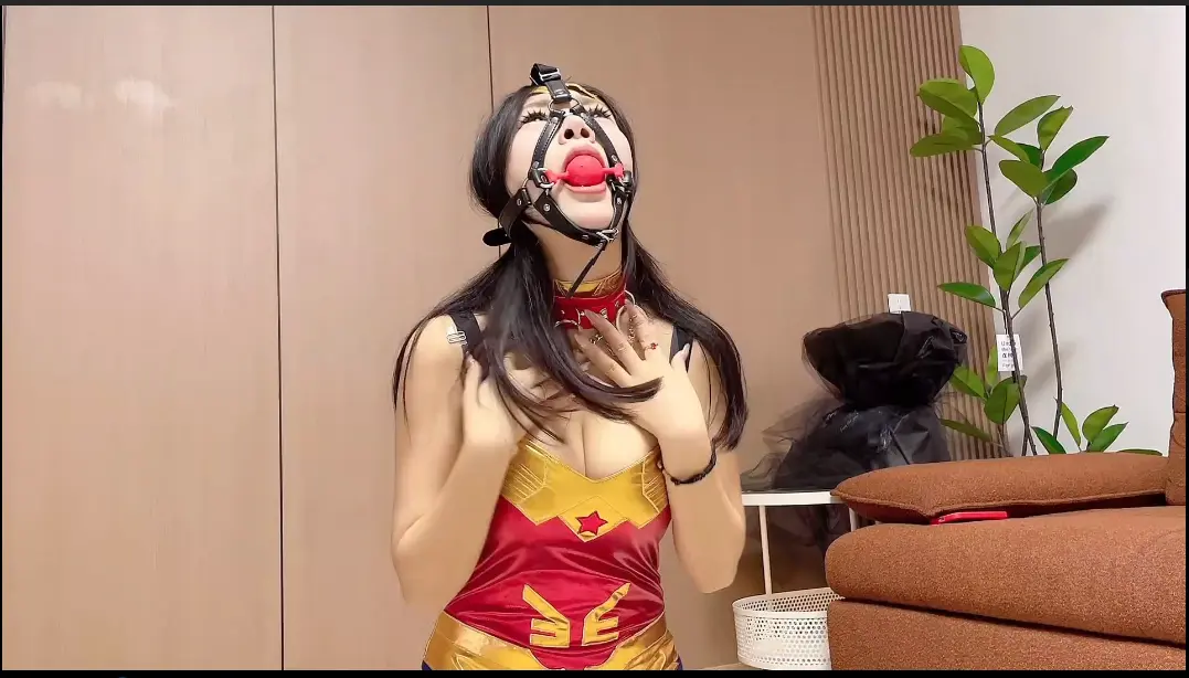 神奇女侠再次醒来后,误入充满粘液房间,脚被粘液牢牢的黏在地上,魔法女王:神奇女侠继续痛苦挣扎吧,看我的魔法操纵术!可怜的神女侠只能沦为魔法女王操纵玩物........