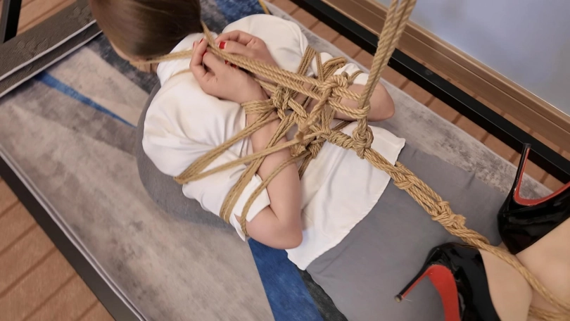 今天给佳佳来个她最擅长的后手观音,捆好之后她没有想到还要驷马,用绳子吊着控制,接下来在用绳子勒上嘴,让她感受一下绳子勒嘴的感觉