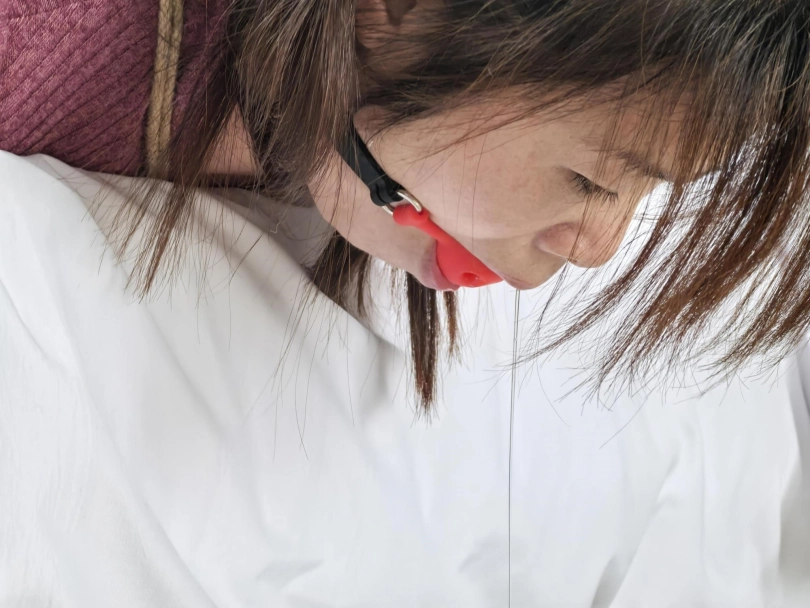 绑好之后直接让她口水流烟灰缸里,然后就出门抽烟聊天,给她自己在床上挣扎流口水,流了半缸口水挺不错,看着都有点搭小帐篷。