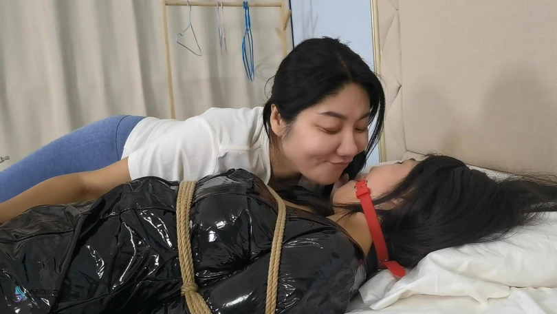女主挣脱了束缚,悄悄的来到女贼身边,突然冲下去将女贼捆绑起来。用口球塞住她的嘴巴。拿来棒棒开始刺激着女贼。解开女贼脚上的束缚,脱掉她的靴子,玩弄着女贼的丝足。很快女贼也发出享受的“呜呜”声。从此女贼就变成了对方的玩物。。。