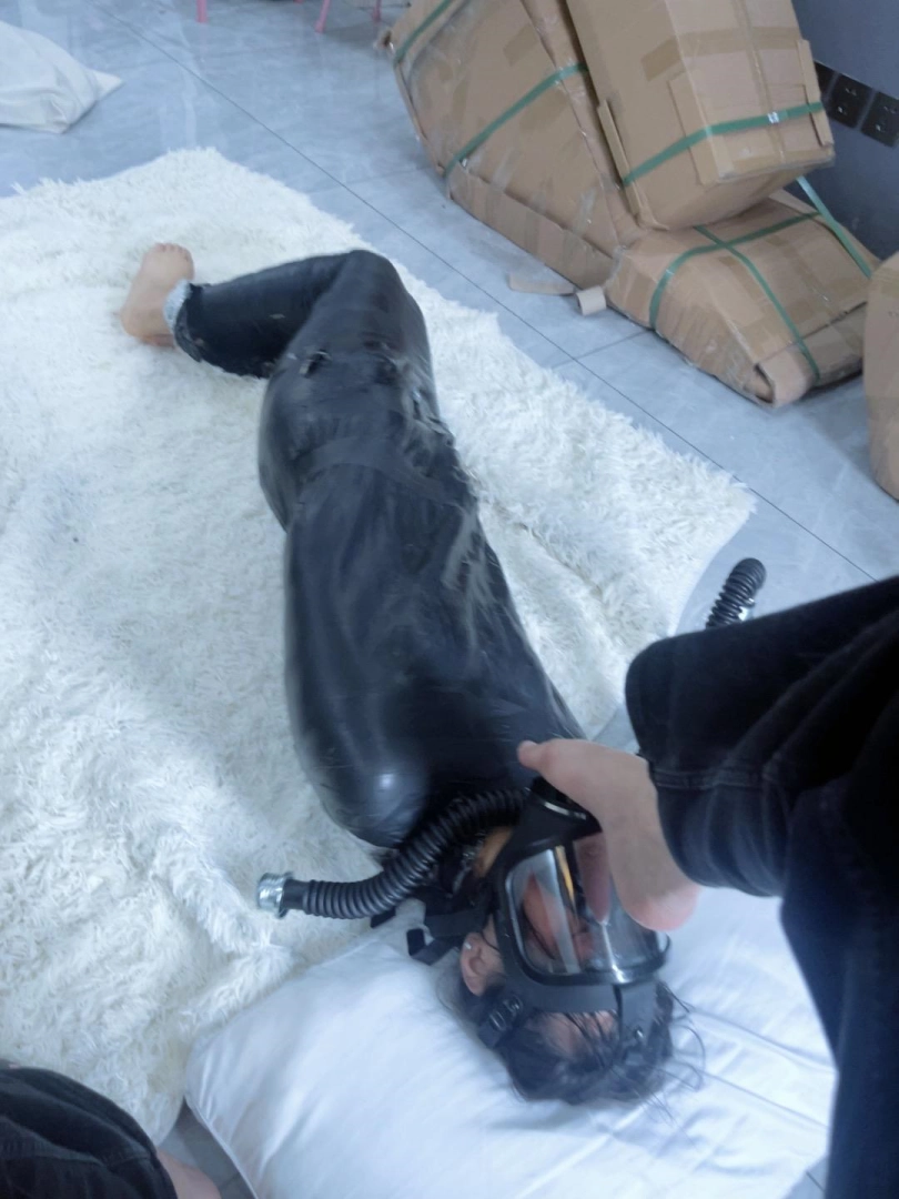 在经历三个多小时的全包后,妹子有些无聊,并且竟敢把我的全包弄破一个口。那么,是时候给她找点新乐子了:给妹子戴上防毒面具,连接呼吸管,连接负压瓶——每一次呼吸都要用力让空气冲破水压的阻碍,随着时间推移氧气会越来越少...