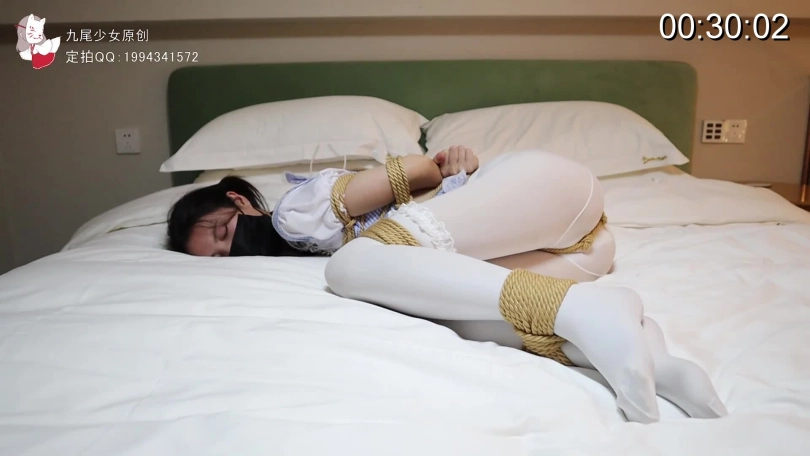 【九尾少女】乖巧的白丝蓝色女仆,捆绑紧缚,爬行SP调教,股绳拘束TK, 白丝美腿,强制GC,最后zw呻吟!