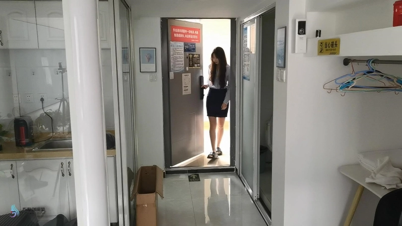A被裁了,手上什么都没有,脚上穿着丝袜和拖鞋,在一栋废弃楼走廊走着,A实在太累,看到一间没人的房间,走了进去,房屋装饰很好.A心生疑问:“这么好的房子没人住?”但是A走了很久,脱掉自己的拖鞋,用手指按压自己的脚尖,然后给自己的双腿做按摩(丝袜特写)躺在床上睡着了。