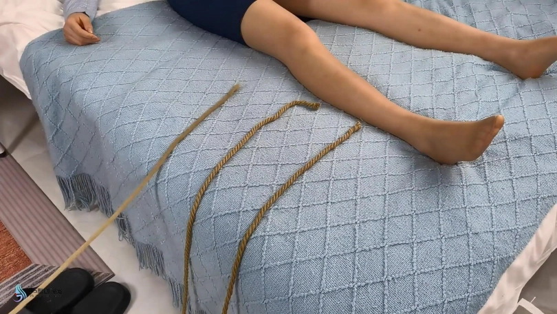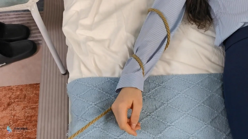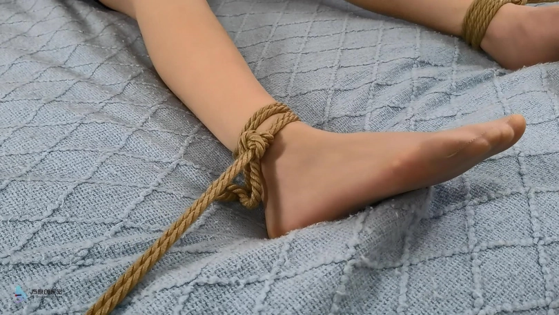 第二天,A把锁换了(拍出A用钥匙开门关门即可)继续在房间休息,然后找工作。晚上A躺在床上,穿着丝袜活动着自己可爱的脚丫(丝袜特写)双手抱头心想:“不需要交房租,省下我一大笔开支,嘻嘻嘻”想着想着,A开始继续放肆地活动自己的脚丫(丝袜特写)从此,A过上了一段时间早上起床找工作,晚上回这间房间吃饭睡觉的生活习惯。有一天晚上,A在睡觉的时候,突然从房间里窜出四根绳子,像蛇一样慢慢爬上了A的床。左右手各一根,双腿各一根。双手的绳子以左右胳膊为中心,从外往里缠卷;双腿的绳子,从脚踝出发向大腿缠卷.